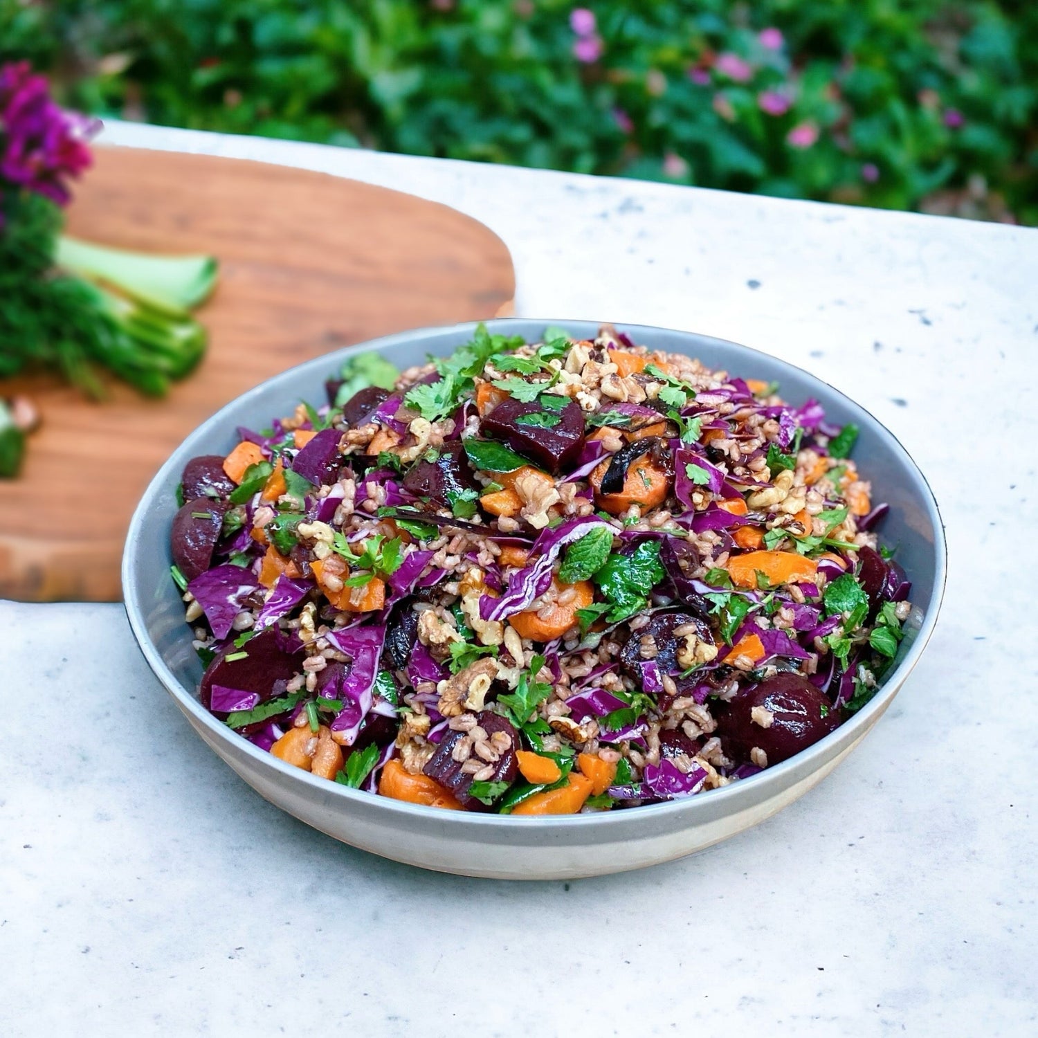 Our nourishing salads are jam packed with grains, legumes and the freshest seasonal vegetables and herbs. All salads are served in large bowls.