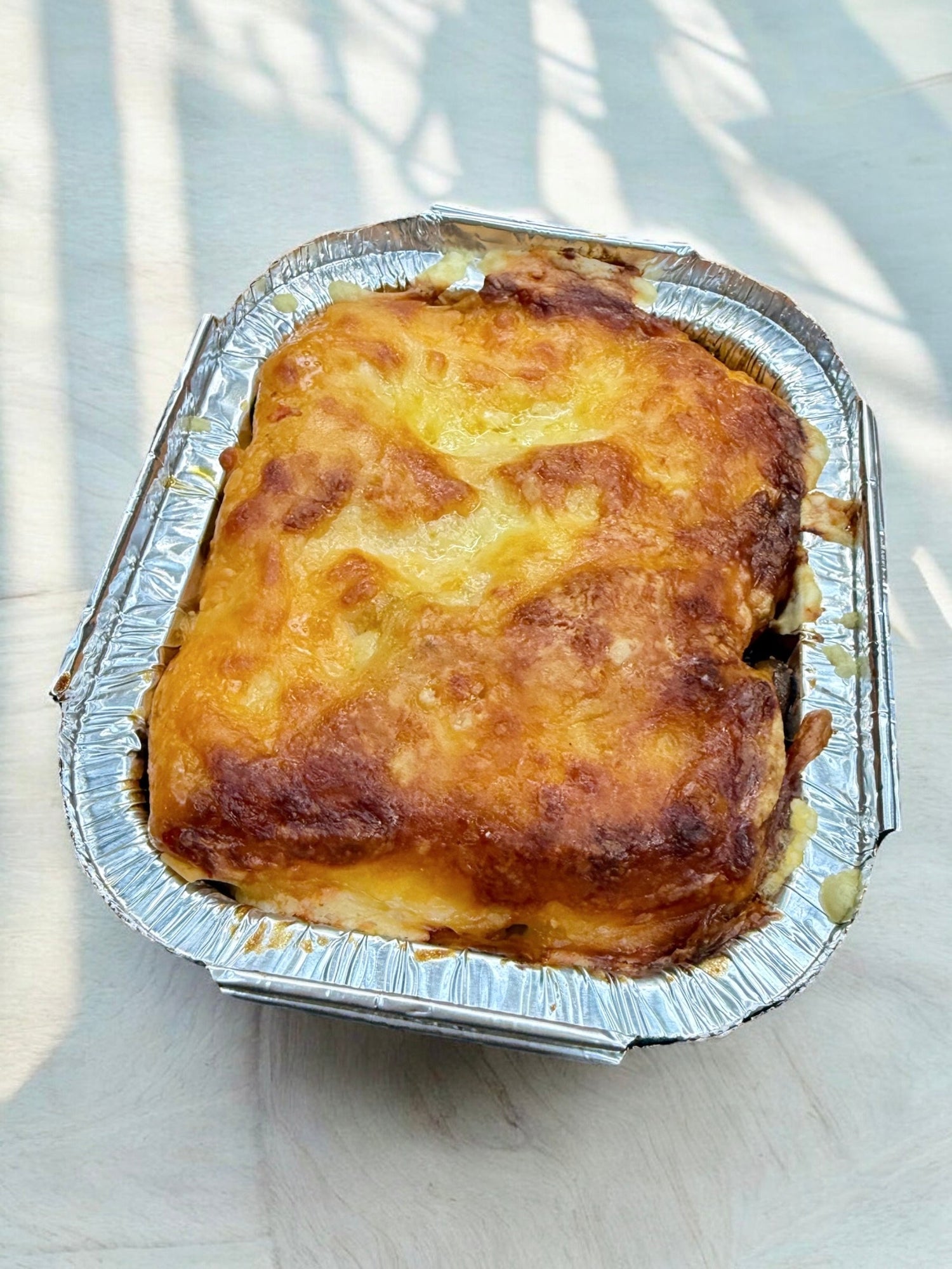 SINGLE SERVE HOT MEALS: $15 per serve, come in foil containers so can be reheated. Can serve in crockery if desired (for small numbers). Minimum order 6. Can make vegetarian version of pasta bake, cottage pie, frittata, mac ‘n’ cheese.