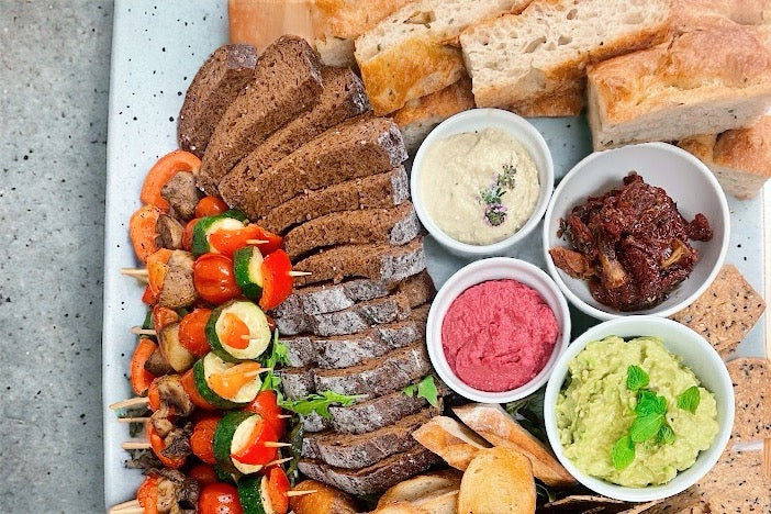 Tofu yakatori skewers, corn & kumara patties, balsamic mushrooms, polenta chips, cherry or sundried tomatoes, vegan zucchini fritter bites, vegetable sticks, hummus, zesty guacamole, paprika aioli, corn chips, sesame crackers, focaccia(can be made GF with GF crackers & focaccia kept separate).